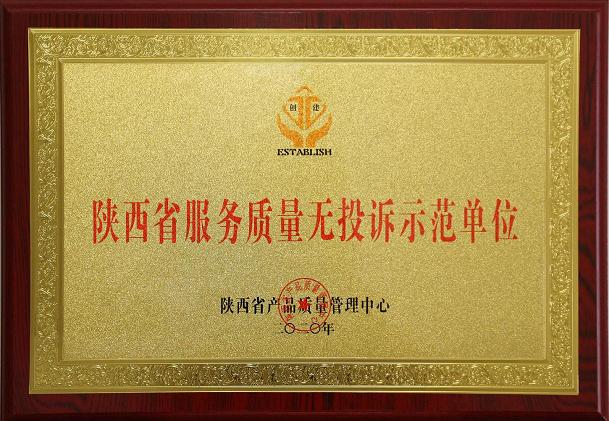 服务质量无投诉证书